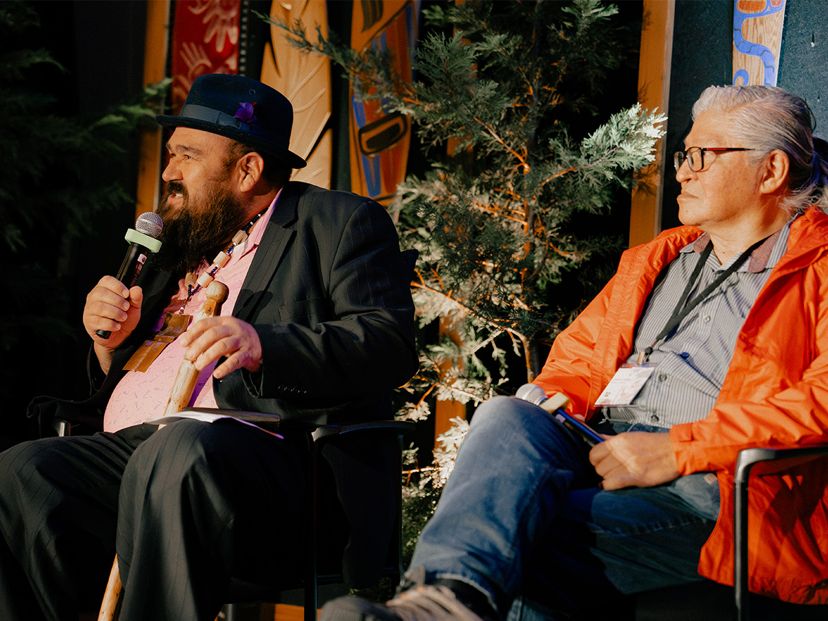 After the Summit, Coast Funds’ partners, funders, and board members joined First Nations leaders for a Celebration Dinner featuring a ‘fireside’ chat between Dallas Smith (Tlowitsis), Chief Darren Blaney (Homalco), and Hereditary Chief Nees Ma’Outa Clifford White (Gitxaała) on the legacy of the Great Bear Rainforest Agreements and how relations between First Nations, Crown governments, and funding partners have evolved in recent decades.